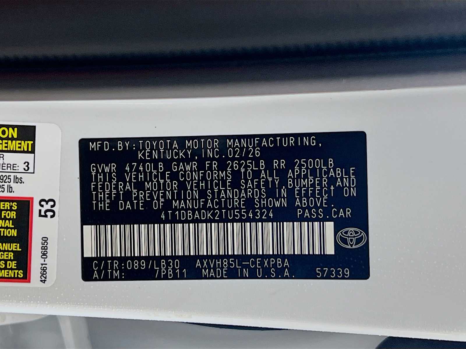 XSE | 10 milesStock # 20875 | VIN # 4T1DBADK2TU554324