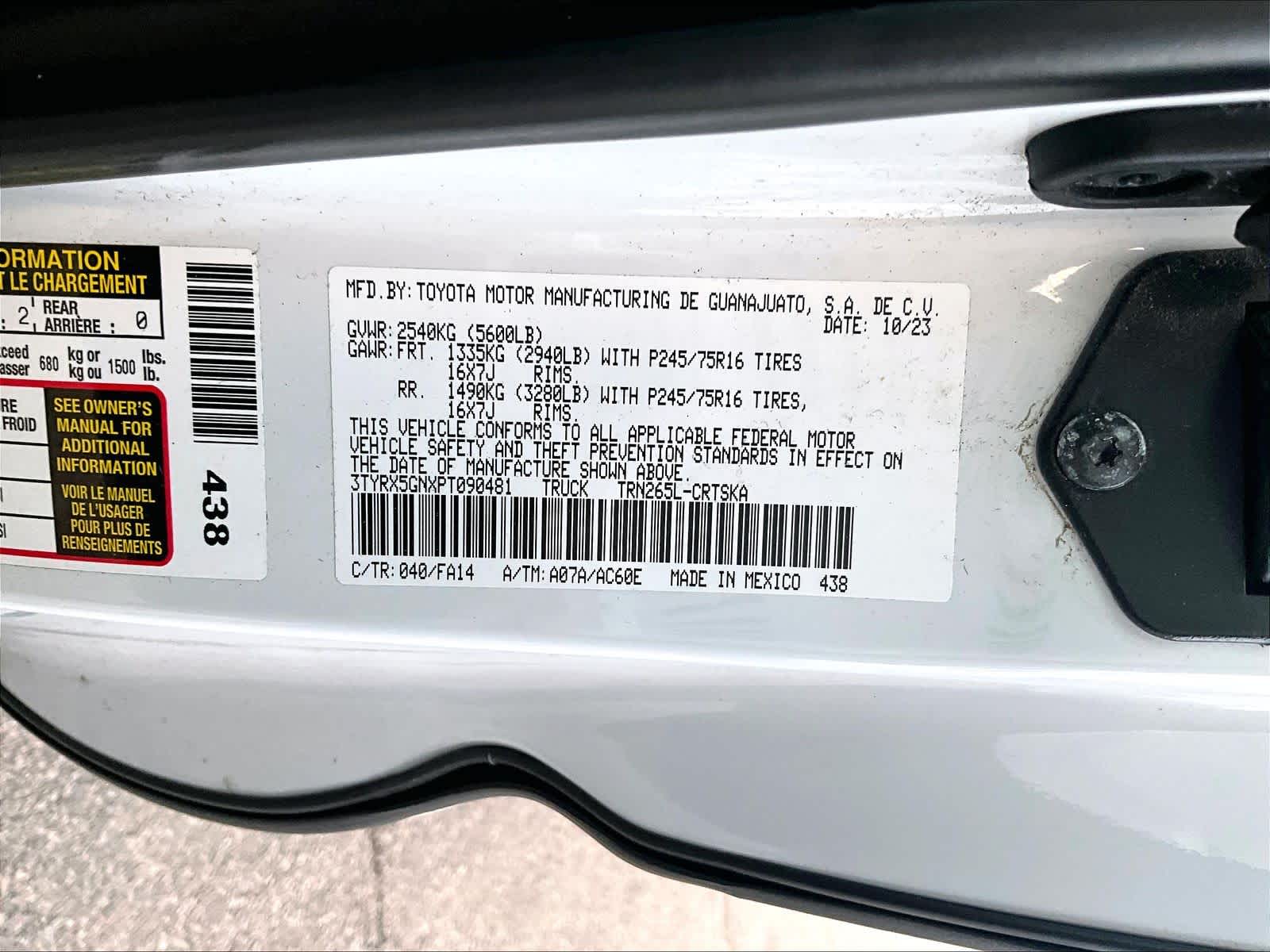SR | 31,031 milesStock # N0300999A | VIN # 3TYRX5GNXPT090481